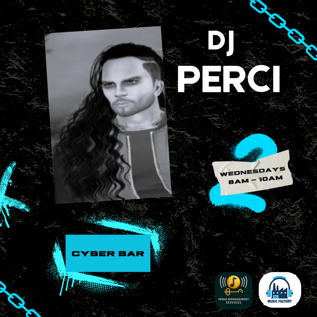 πΆβ‘ DJ Perci LIVE at Cyber Bar β‘πΆ Start your Wednesday mornings with energy as DJ Perci spins the hottest beats to wake up the grid and get the party rolling! π Every Wednesday β° 8:00β10:00 AM SLT π Cyber Bar π SURL: https://maps.secondlife.com/secondlife/VMS/212/44/3000 π₯ Two hours of smooth mixes, high-energy tracks, and the perfect midweek vibe β only at Cyber Bar! β¨ Presented by VMS & Music Factory #VMS #MusicFactory #CyberBar #DJPerci #MorningVibes #SecondLifeEvents