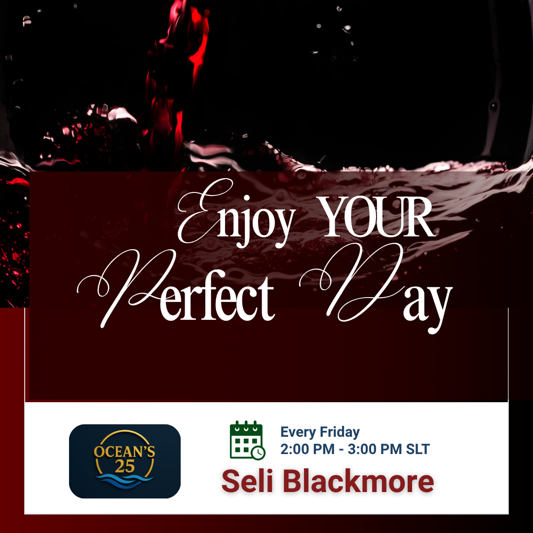 🎤 LIVE PERFORMANCE: "Seli Nightfire" 🔥 DJ: Seli Blackmore (@seli.nightfire) ⏰ Time: 2:00 PM – 3:00 PM 📍 Venue: Oceans 25 Ballroom — https://maps.secondlife.com/secondlife/VMS/128/128/25 Get ready for an electrifying musical experience at Oceans 25 Ballroom! 🌊✨ Join us for an exclusive live performance by the talented Seli Nightfire, blending the best of live vocals, energy, and emotion in a way you won’t want to miss. 🎶 Whether you’re a long-time fan or new to Seli’s unique sound, this one-hour show promises to leave you wanting more! As the clock strikes 2 PM, DJ Seli Blackmore (Instagram: @seli.nightfire) will take over the decks, setting the perfect vibe with a dynamic mix of beats and rhythms to keep you moving! 💃🎧 It’s going to be a night to remember, filled with incredible music, stunning performances, and an atmosphere that can only be found at Oceans 25. 📅 Mark your calendars 💥 Bring your friends, and let’s make this a day to remember!