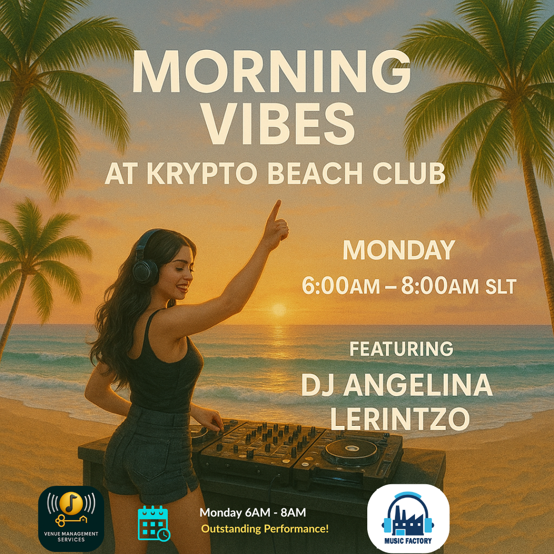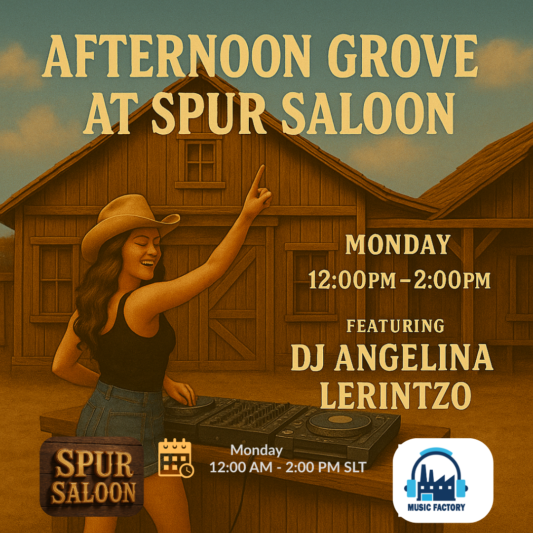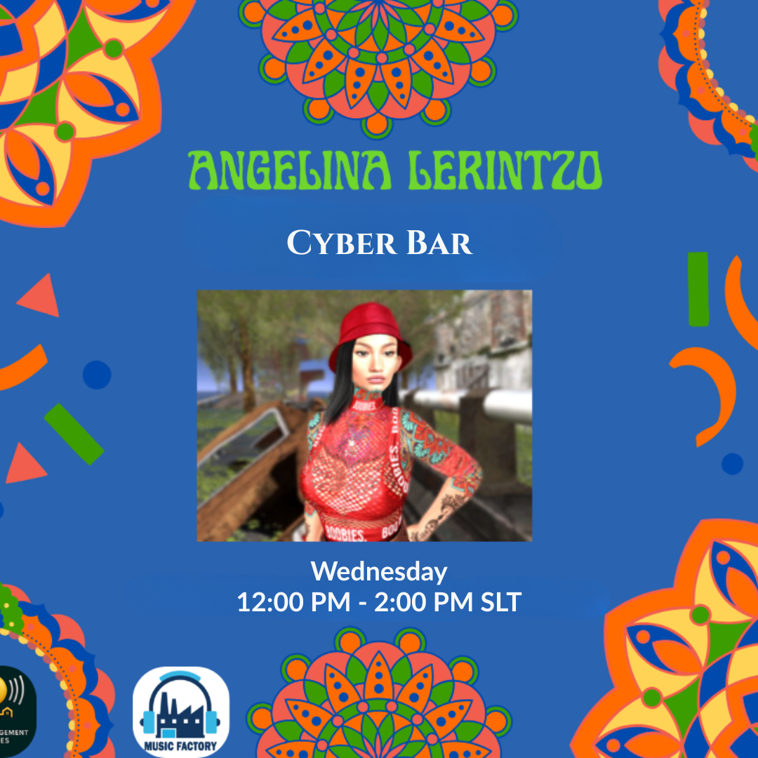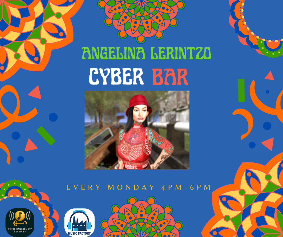 🎧🔥 DJ Angelina Lerintzo LIVE @ Cyber Bar 🔥🎧 Kick off your week in style with DJ Angelina Lerintzo, one of the best DJs on the grid! She’ll keep the crowd dancing, energized, and entertained with two hours of non-stop beats under the neon glow. 🗓 Every Monday ⏰ 4:00–6:00 PM SLT 📍 Cyber Bar 🌐 SURL: https://maps.secondlife.com/secondlife/VMS/212/44/3000 ✨ Presented by VMS & Music Factory Start your week with music, energy, and good vibes — only at Cyber Bar! #VMS #MusicFactory #CyberBar #DJAngelina #SecondLifeEvents #SLMusic